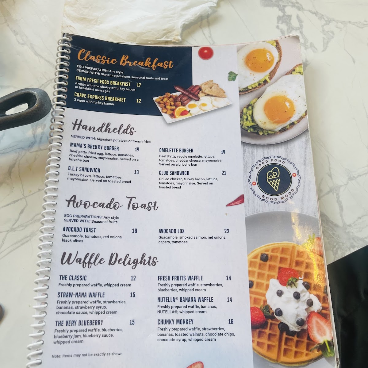 I recently visited Craveables Cafe in Mississauga, and it was such a delightful experience! They serve an amazing breakfast menu and have the most delicious desserts. I tried their waffle dessert and a refreshing drink, and I was absolutely in love with the flavors. The waffles were perfectly cooked, with just the right amount of sweetness, and the drink was a perfect complement. The atmosphere is cozy, and the staff is super friendly and welcoming. If you’re in Mississauga and looking for a place to enjoy a tasty breakfast or indulge in mouthwatering desserts, Craveables is a must-visit. Highly recommended!