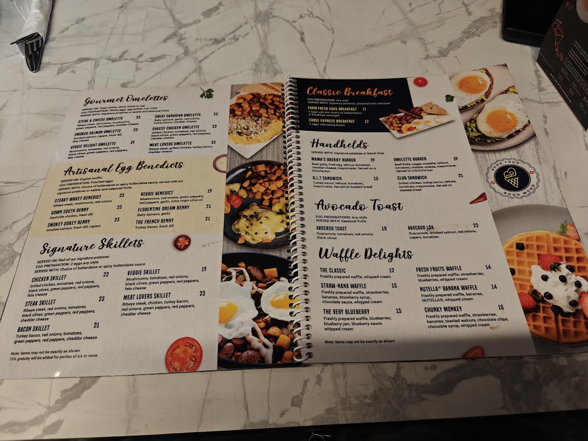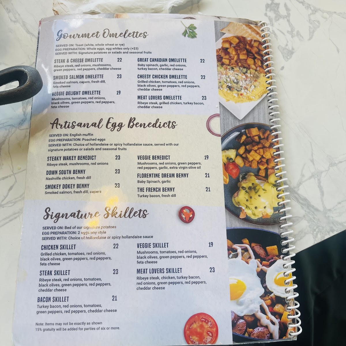 My husband and I came to visit the area for a couple Blue Jays games, and we happened upon this little breakfast spot. Guys. What a special place!!! Great atmosphere, our waitress Saleena was exceptional, super sweet and gave great recommendations. I tried the Empress, a waffle sweet treat. It was to die for. The waffle was amazing, probably the best waffle I’ve ever had, the ice cream was creamy and dreamy, every part fit together and tasted amazing. What a great spot if you’re in the area. And if you’re not I’m the area...it’s worth the trip!